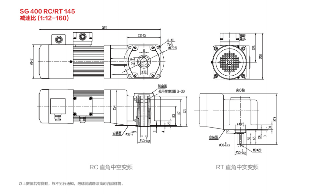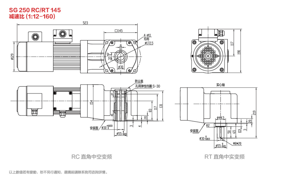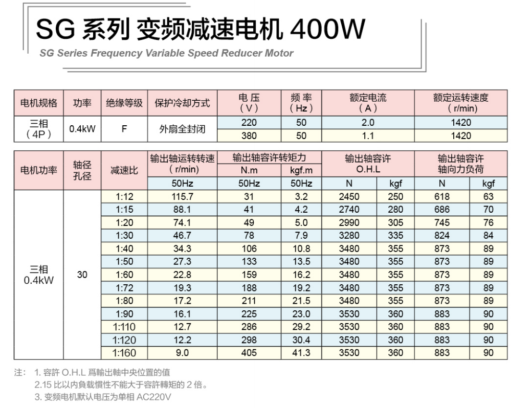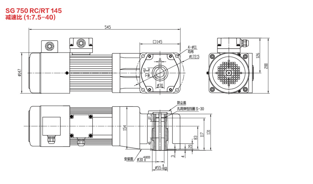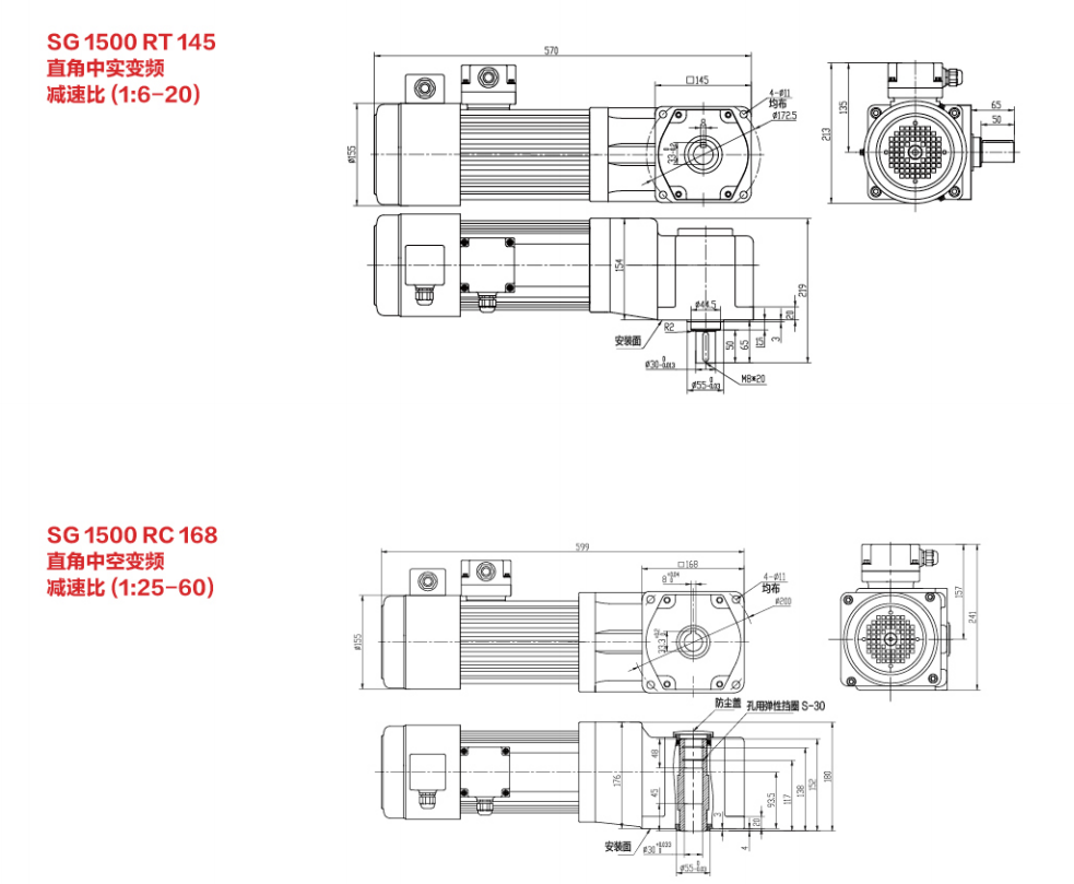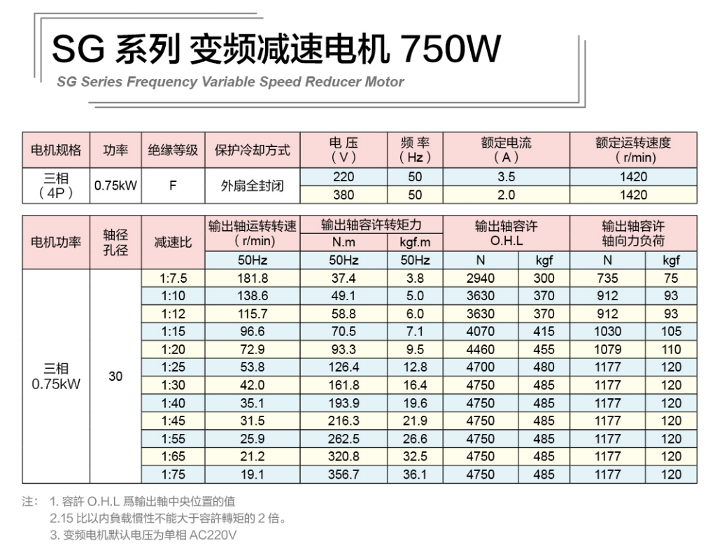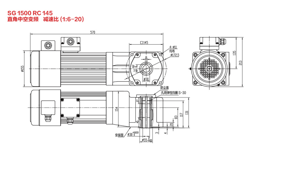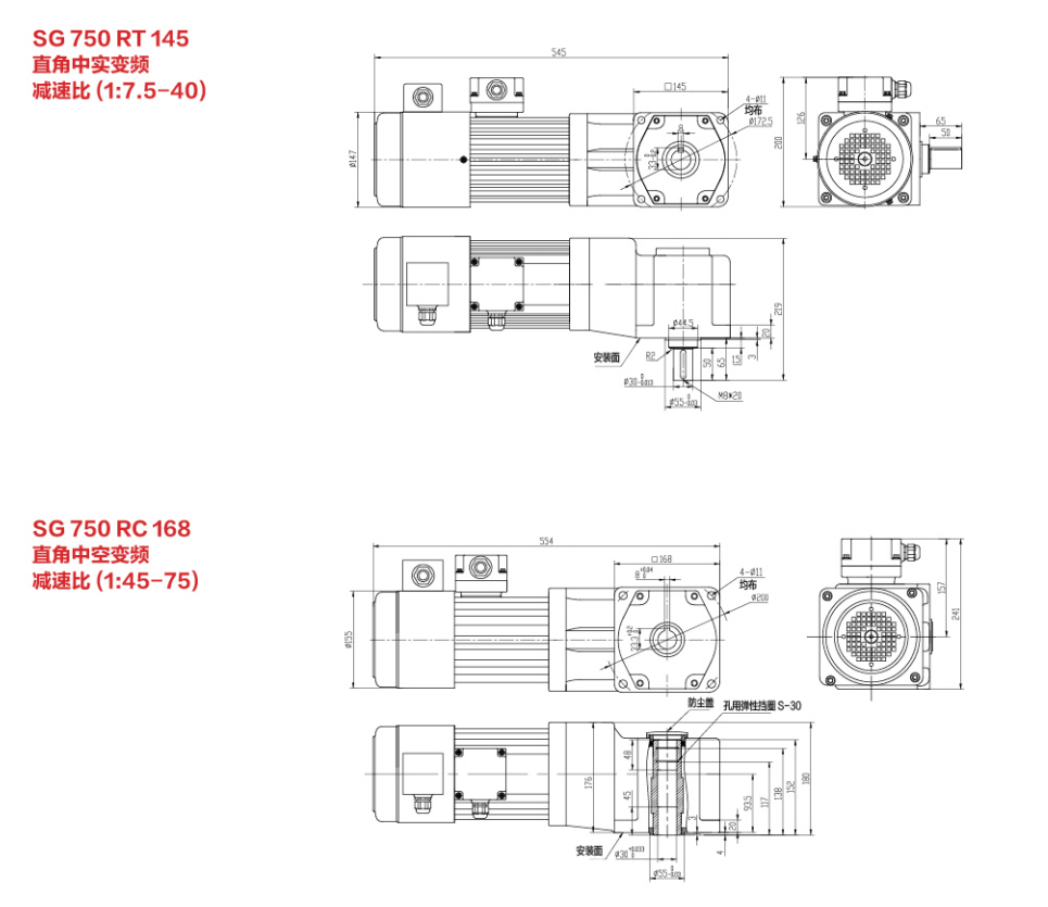 SG30标准实心轴减速电机 100W-2200W